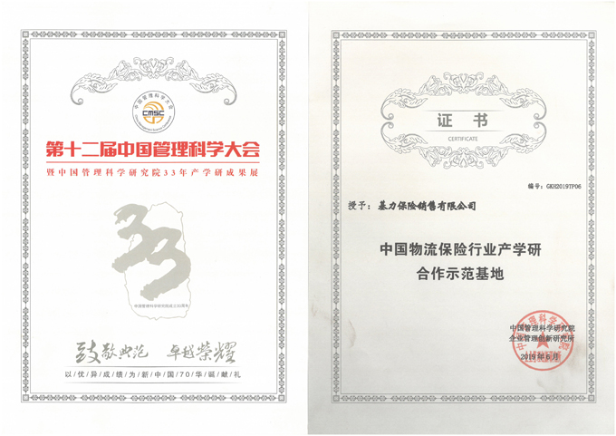 基力保险销售有限公司荣获第十二届中国管理科学家大会荣誉